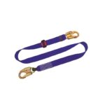 Eslinga regulable con absorbedor de energía Fabricada en reata poliéster de alta tenacidad con una resistencia mínima de 9,000 lb. Hebilla de ajuste y ganchos en acero forjado con una resistencia a la tracción mínima de 5,000 lb.